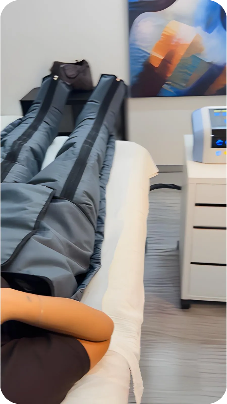 Trattamento drenante che utilizza una pressione modulata per riattivare la circolazione linfatica e venosa. Aiuta a ridurre gonfiore, ritenzione idrica e senso di pesantezza alle gambe, migliorando la silhouette e favorendo il benessere generale.