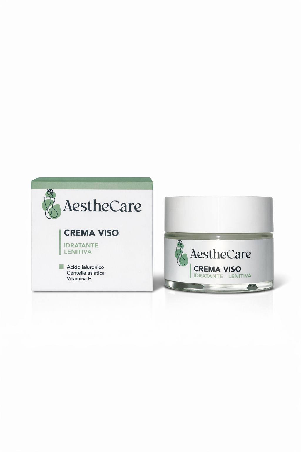 Crema viso dalla texture fresca e leggera, formulata con acido ialuronico e centella asiatica per